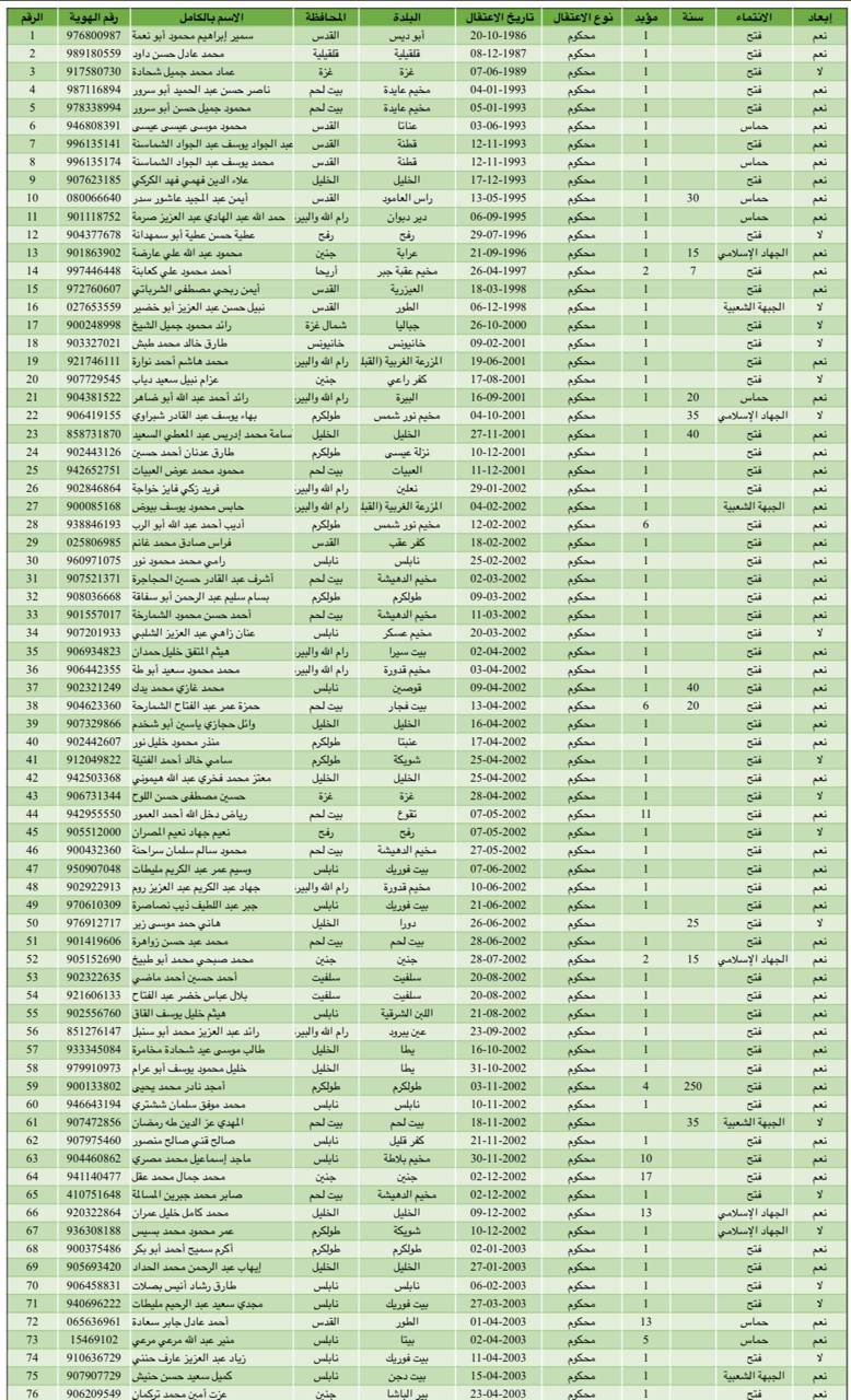 دفتر اطلاع رسانی امور اسرا اسامی اسرای فلسطینی را که قرار است در چارچوب توافق تبادل اسرا از زندانهای رژیم صهیونیستی آزاد شوند، منتشر کرد.