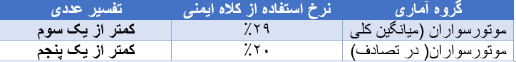 – موتورسواران نسبت به ترک‌نشین‌ها نرخ استفاده بالاتری دارند: ۶۳٪ در برابر ۲۸٪