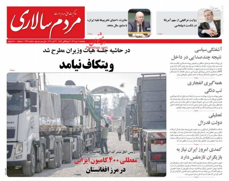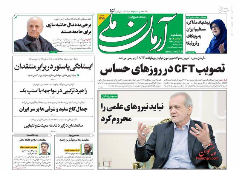 روزنامه‌های صبح امروز پنجشنبه ۱۰ مهر ۱۴۰۴، تیتر یک خود را به موضوعاتی از قبیل عدم حضور ویتکاف در مذاکره مستقیم و الحاق مشروط CFT اختصاص داده‌اند.